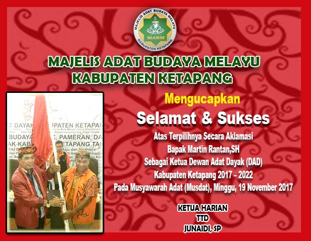 Aklamasi, Martin Rantan Terpilih Sebagai Ketua Dewan Adat Dayak Ketapang