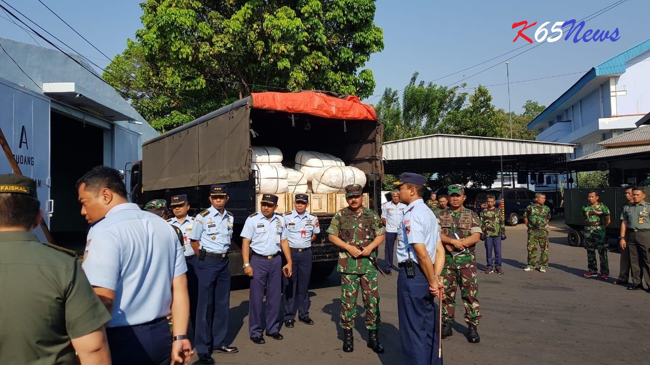 Bantuan sebanyak 9,8 ton dari TNI, terdiri dari 55 tenda lapangan dan obat-obatan diangkut menggunakan Pesawat Hercules C-130 A-1312 dibawah pimpinan Pilot Mayor Pnb Fandi Abdilah dan Co Pilot Lettu Pnb Gustin Rossyan.***(SP/K65News).