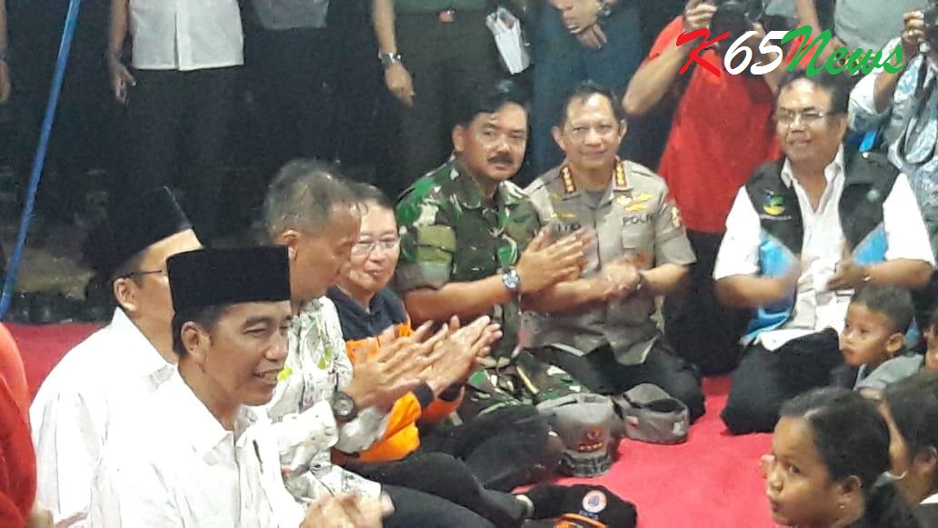 Setibanya di Lapangan Desa Balai Kuwu, Presiden RI Ir. Joko Widodo didampingi Panglima TNI Marsekal TNI Hadi Tjahjanto dan Kapolri Jenderal Pol Tito Karnavian melakukan dialog dan tanya jawab serta bernyanyi bersama dengan anak-anak yang turut serta dengan orangtuanya ikut mengungsi, akibat bencana gempa bumi yang mengguncang wilayah Lombok beberapa waktu lalu.