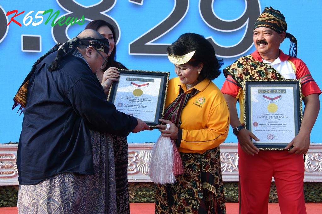 Sementara itu, penyerahan Rekor MURI diberikan oleh Ketua MURI Jaya Suprana kepada Panglima TNI Marsekal TNI Hadi Tjahjanto, S.I.P. Ketua MURI mengatakan bahwa acara ini merupakan rekor dunia yang belum pernah terjadi di planet bumi, hampir 400 ribu rakyat Indonesia bersama menari Gemu Famire. Apa yang telah dilakukan oleh Panglima TNI atas inspirasi Ketua Umum Dharma Pertiwi Ibu Nanny Hadi Tjahjanto dan seluruh dukungan prajurit TNI-Polri serta keluarganya sebagai bukti bahwa TNI-Polri manunggal dengan rakyat dalam kesenian. “Kami sangat menghormati dan terharu dengan prakarsa ini. Hal ini bukan hanya melestarikan dan menjunjung tinggi tapi juga mengembangkan maha karya kebudayaan Nusantara,” katanya.***(SP/K65News).