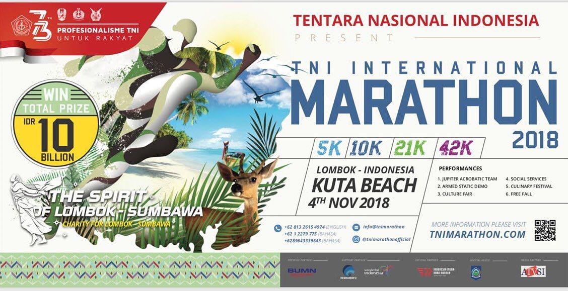 LOMBOK – Dalam rangka memperingati HUT ke-73 Tentara Nasional Indonesia tahun 2018, TNI akan menggelar Lomba International Marathon 2018 bertempat Mandalika, Lombok, Nusa Tenggara Barat pada tanggal 4 November 2018 mendatang.