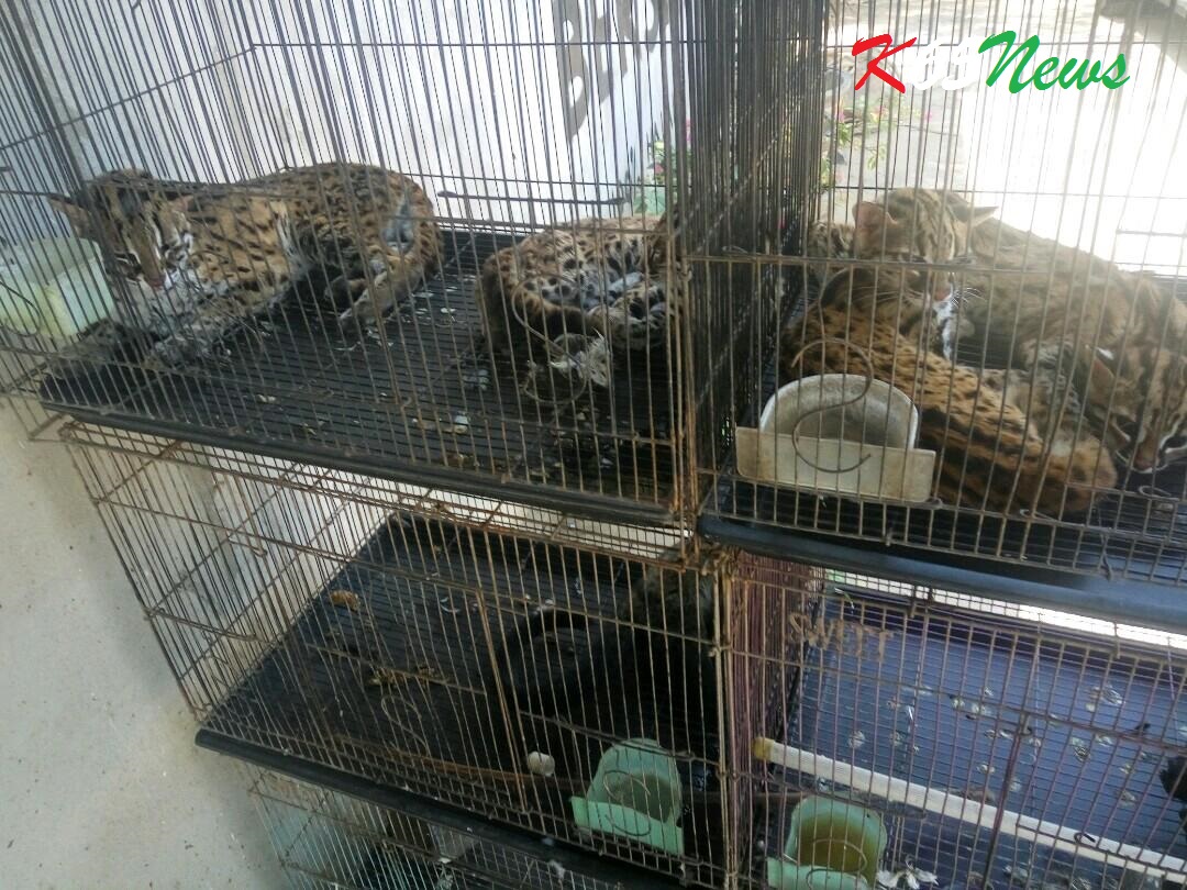 Barang bukti yang diamankan antara lain, 4 ekor Kucing hutan yang terdiri dari 2 ekor kucing jantan dan 2 ekor kucing betina dan 2 buah kandang kucing.