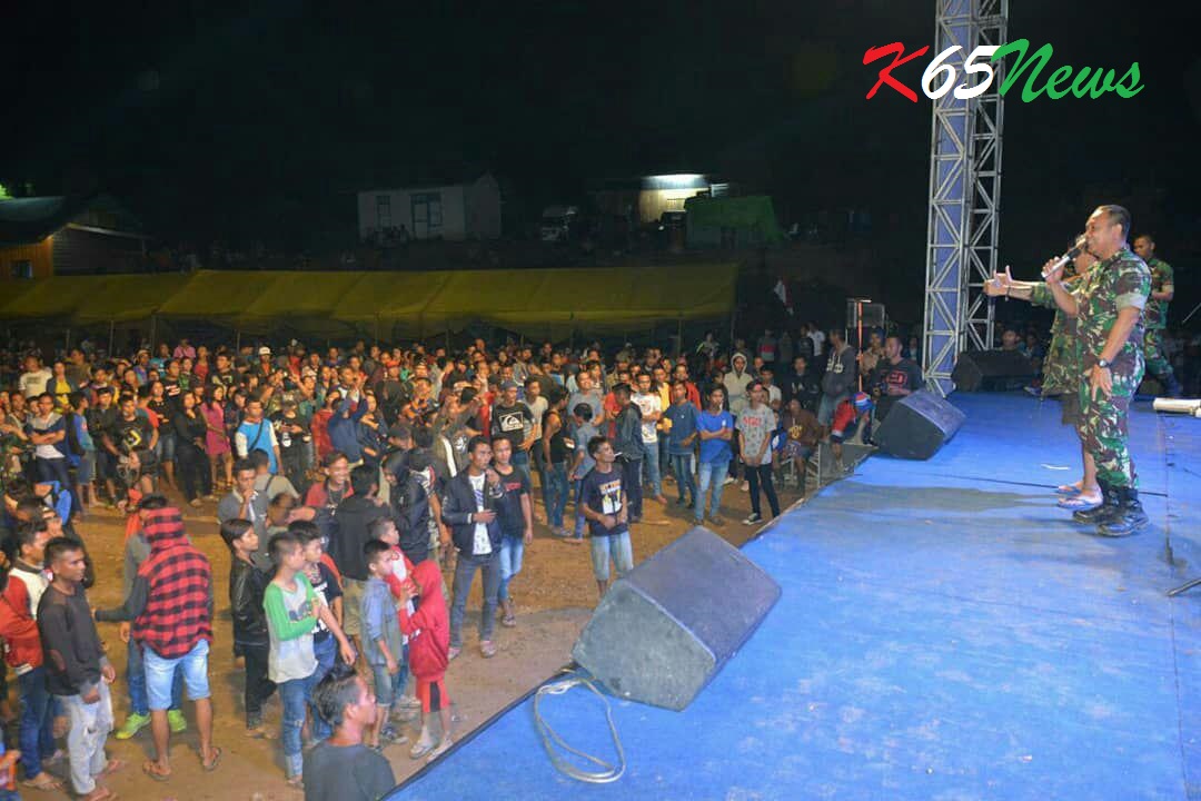 SINTANG – Kepala Staf Kodam XII/Tanjungpura, Brigadir Jenderal TNI Alfret Denny D. Tuejeh, duduk bersama ratusan warga perbatasan RI-Malaysia, dalam acara panggung hiburan yang digelar oleh Kodam XII/Tpr, di Dusun Belubu, Desa Nanga Bayan, Kecamatan Ketungau Hulu, Kabupaten Sintang, Kalimantan Barat, Selasa (18/9/2018) malam lalu.