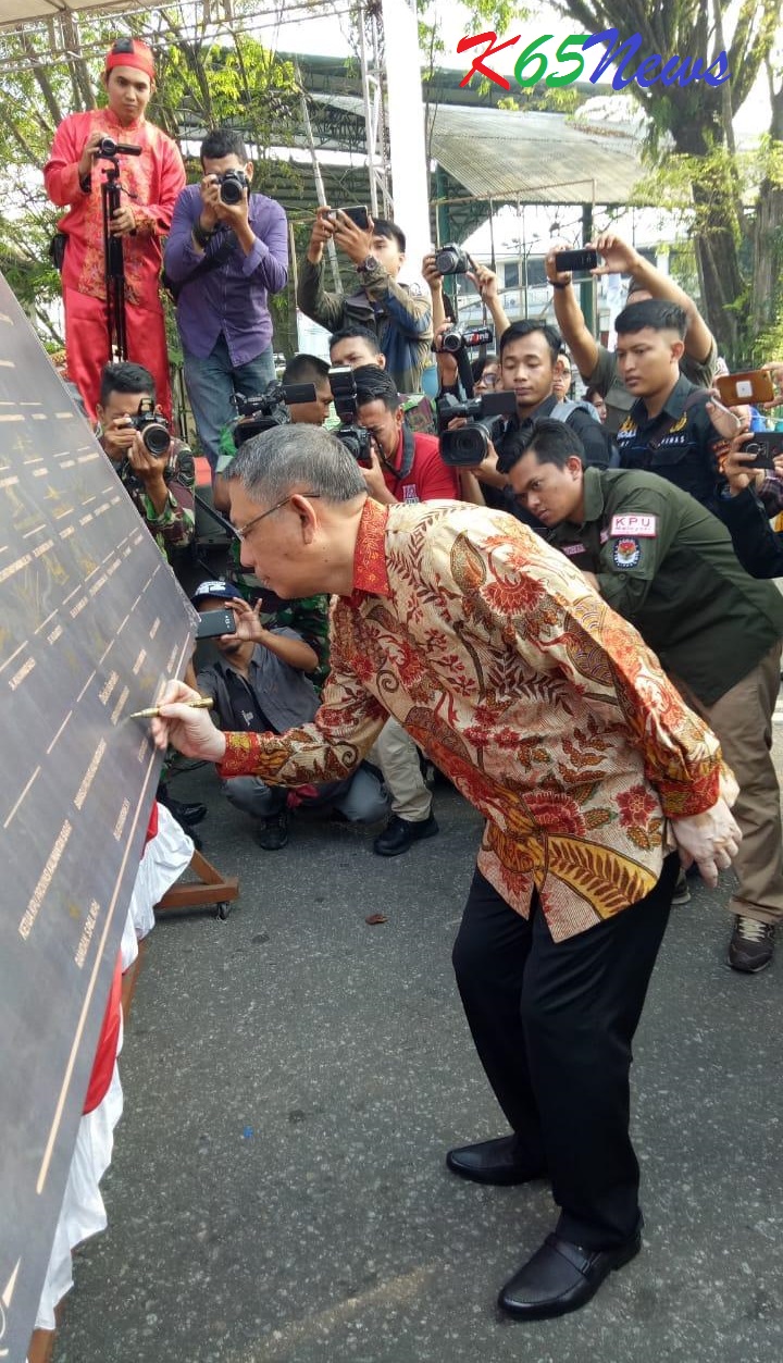 Gambar : Gubernur Kalbar H. Sutarmidji, SH, M.Hum menandatangani Deklarasi Kampanye Damai.***(Its)