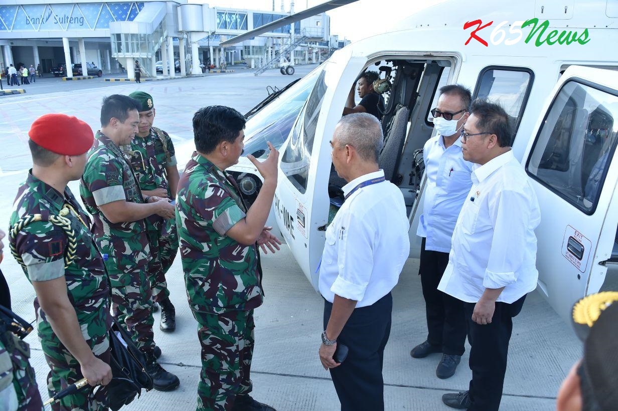 PALU – Panglima TNI Marsekal TNI Hadi Tjahjanto, S.I.P beserta Menkopolhukam RI Jenderal TNI (Purn) Wiranto, Menteri Sosial RI Agus Gumilang Kartasasmit, Menkominfo RI Rudiantara, Wakapolri Komjen Pol Drs. Aridono Sukmanto, S.H., Pangkostrad Lejten TNI Andika Perkasa, S.E., M.A., M.Sc., M.Phil., Ph.D., dan Asops Panglima Mayjen TNI Ganip Warsito melakukan pantauan lokasi gempa melalui udara dengan menggunakan Helikopter di Wilayah Palu, Provinsi Sulawesi Tengah, Sabtu (29/9/2018).***(SP/K65News).