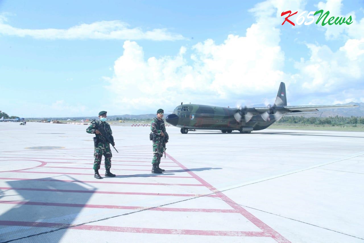 PALU – Sebanyak 346 personel TNI-Polri berhasil mensterilkan Bandara Mutiara Sis Al-Jufri dari kerumunan para pengungsi yang ingin keluar dari kota Palu, pasca bencana gempa bumi dan tsunami berkekuatan 7,7 skala richter yang telah mengguncang Kota Palu dan Kabupaten Donggala, Sulawesi Tengah, pada tanggal 28 September 2018.
