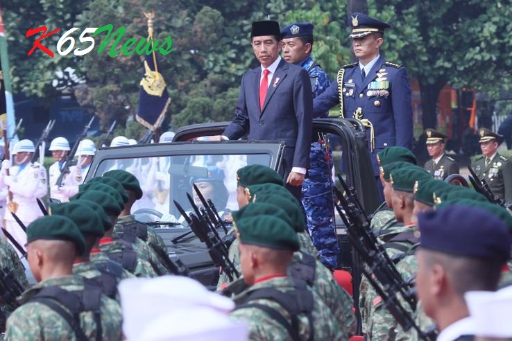 JAKARTA – Presiden RI Ir. H. Joko Widodo memimpin Upacara Parade Peringatan HUT Ke-73 TNI Tahun 2018 di Plaza Mabes TNI Cilangkap, Jakarta Timur, Jum’at (5/10/2018). Bertindak selaku Komandan Upacara adalah Kolonel Pnb Yoyon Kuscahyono yang sehari-hari menjabat sebagai Asops Kosekhanud II.