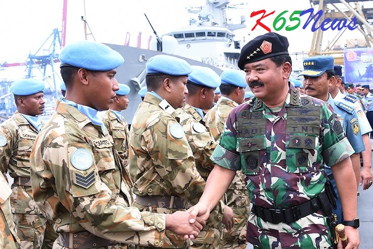 JAKARTA – Panglima TNI Marsekal TNI Hadi Tjahjanto, S.I.P., menyambut Satgas Maritime Task Force (MTF) TNI Kontingen Garuda XXVIII-J UNIFIL Lebanon TA 2017 di Dermaga Komando Lintas Laut Militer (Kolinlamil) Jakarta. Senin, (5/11/2018).
