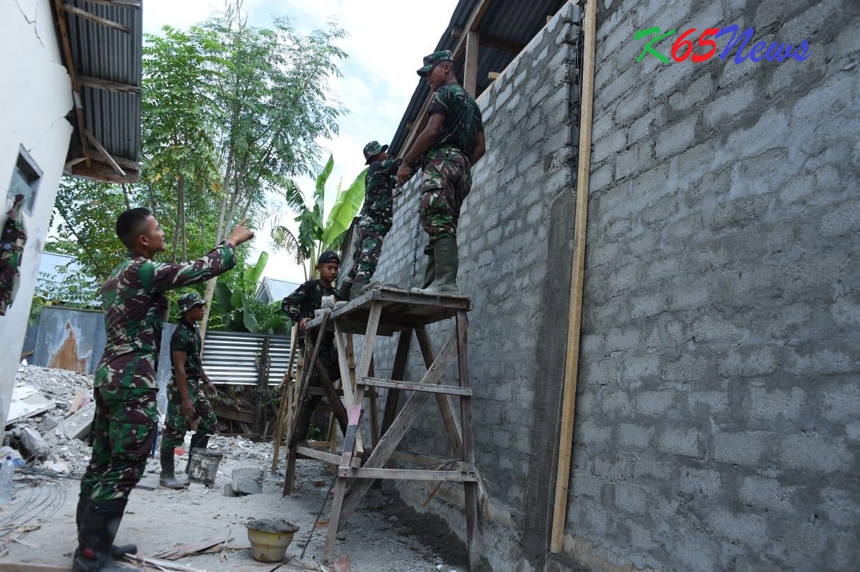PALU – Sejumlah 23 prajurit TNI dari Batalyon Zeni Tempur (Yon Zipur) 17/AD dipimpin Letda Czi Hadi Setia Wibowo yang tergabung dalam Komando Tugas Gabungan Terpadu (Kogasgabpad) penanggulangan bencana gempa bumi, tsunami dan likuifaksi di Sulawesi Tengah, melaksanakan renovasi rumah Bintara Pembina Desa (Babinsa) di Kelurahan Kawatuna, Palu, Sulteng, Senin (5/11/2018).