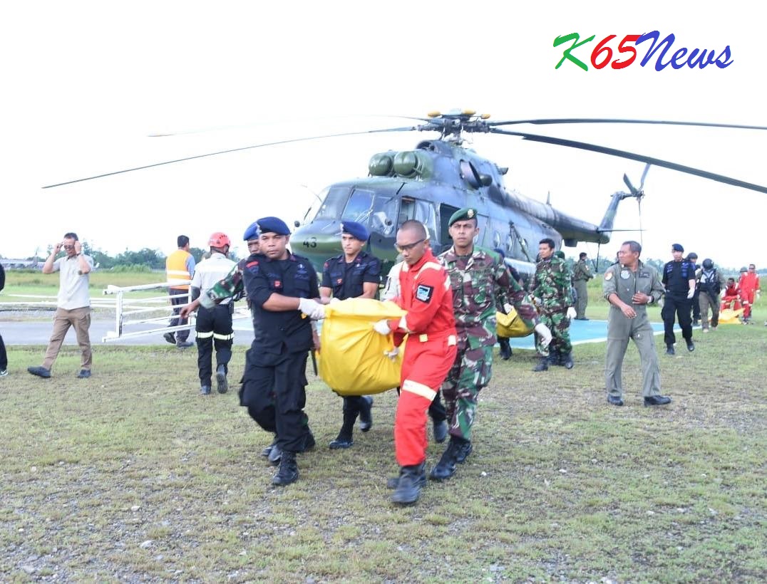 Jenazah yang dievakuasi hari ini sejumlah 7 jenazah menggunakan Helikopter MI 17 milik TNI. Selanjutnya Jenazah korban dibawa ke ruang DVI yang telah disiapkan di Bandara Timika untuk proses identifikasi dan perawatan.***(SP/K65News).