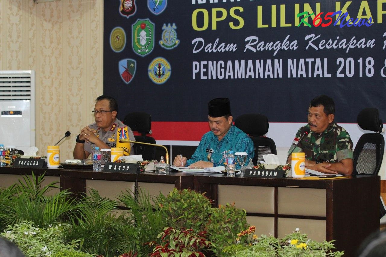 PONTIANAK – Panglima Komando Daerah Militer XII/Tanjungpura, Mayor Jenderal TNI Achmad Supriyadi menghadiri Rapat Koordinasi (Rakor) Lintas Sektoral Operasi Lilin Kapuas 2018 dalam rangka kesiapan pelaksanaan pengamanan Natal 2018 dan Tahun Baru 2019 di Graha Khatulistiwa Polda Kalimantan Barat, Jalan Ahmad Yani, Kota Pontianak, Jumat (14/12/2018).