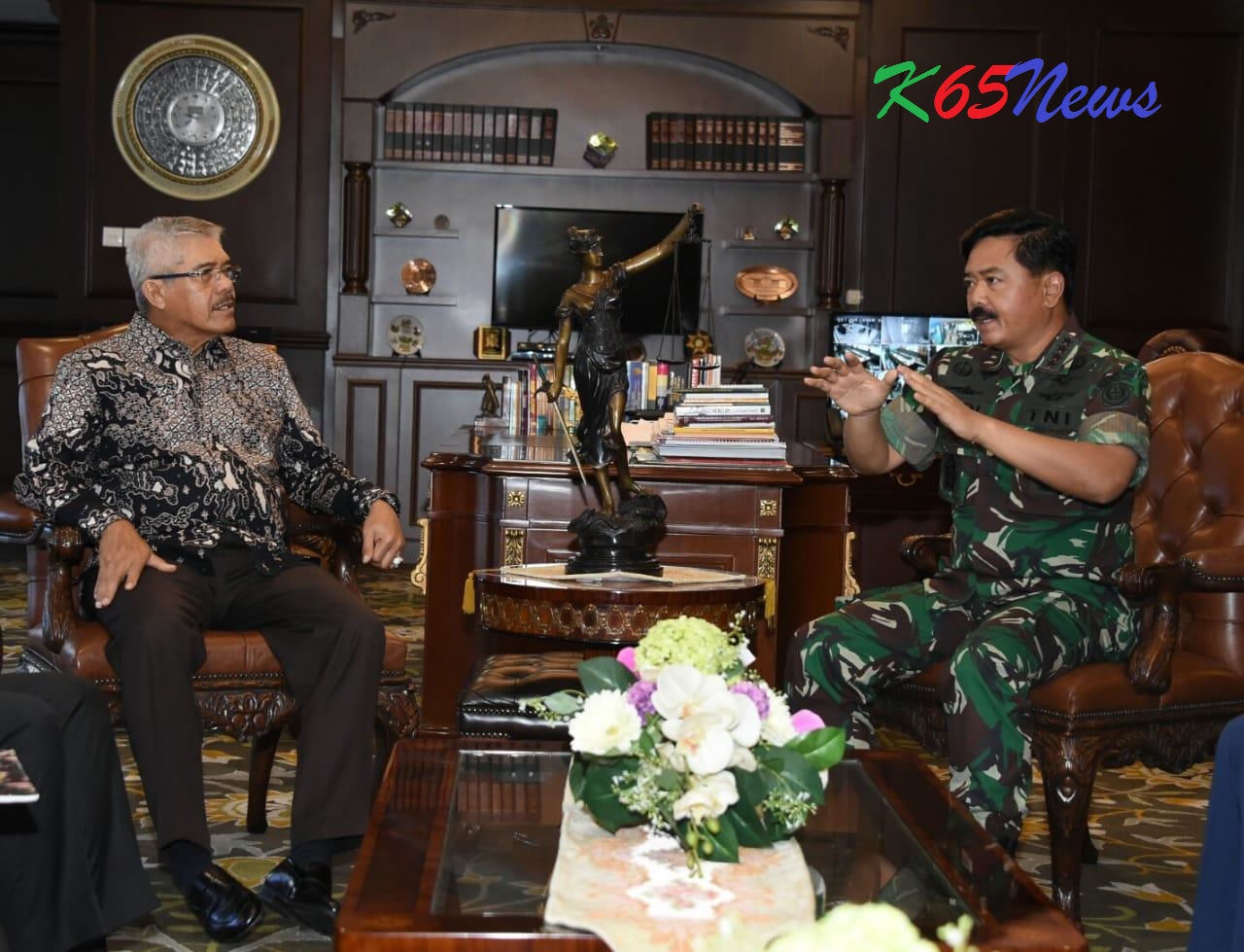JAKARTA – Panglima TNI Marsekal TNI Hadi Tjahjanto, S.I.P. didampingi Aspers Panglima TNI Marsda TNI Dedy Permadi, S.E., M.M.D.S., Kababinkum TNI Mayjen TNI Joko Purnomo, S.H., M.H. dan Kadilmiltama Mayjen TNI Agus Dani silaturahmi dengan Ketua Mahkamah Agung Mahkamah Agung Prof. Dr. H. Muhammad Hatta Ali, S.H, M.H dalam rangka berdiskusi mengenai hukum di Indonesia, bertempat di Kantor Mahkamah Agung, Jalan Medan Merdeka Utara, Jakarta, Jumat (4/1/2019).***(SP/K65News).