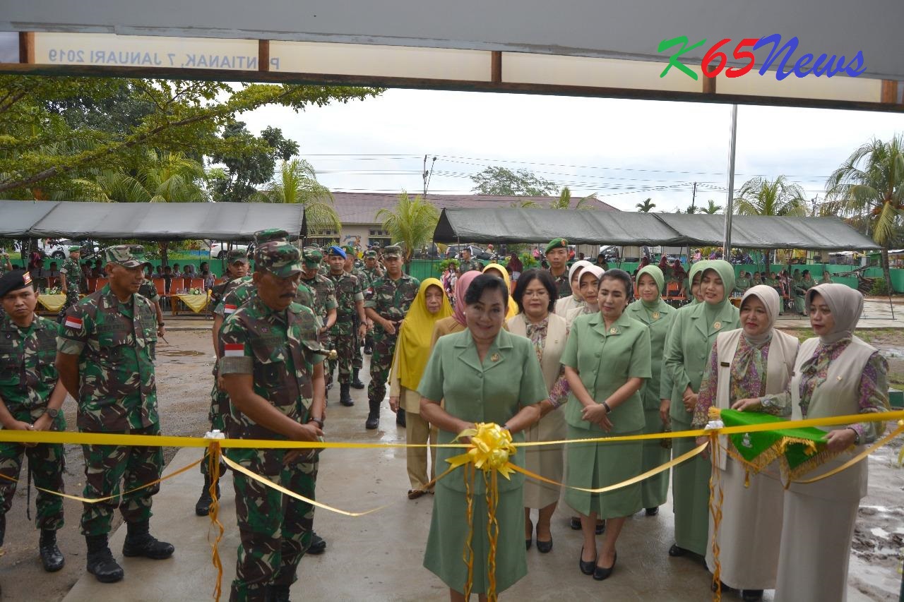 KUBU RAYA – Panglima Komando Daerah Militer XII/Tanjungpura, Mayor Jenderal TNI Achmad Supriyadi mendampingi Ketua Yayasan Kartika Jaya Cabang XVII Tanjungpura, Ny. Tien Achmad Supriyadi pada Peresmian Renovasi Sekolah Dasar Kartika XVII-2, Jalan Adi Sucipto, Sungai Raya, Kubu Raya, Senin (7/1/2019).