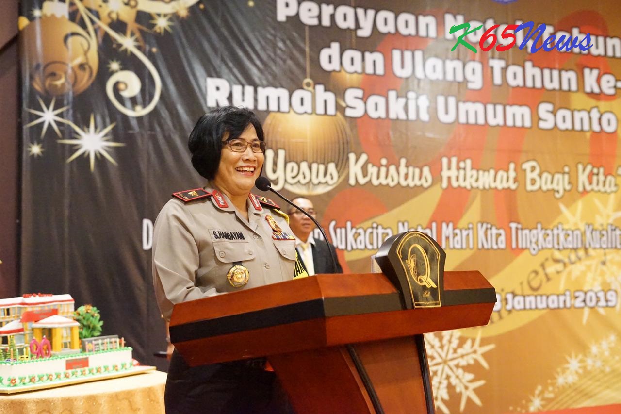 “Saya ucapkan selamat natal 2018 dan tahun baru 2019, serta Dirgahayu yg ke -90 Rumah Sakit Umum Santo Antonius. Semoga diusianya yg semakin matang ini, Rumah Sakit Umum Santo Antonius tetap dapat memberikan pelayanan dengan kasih seperti mottonya yaitu Serviam in Caritate”, ungkap Wakapolda Kalbar.