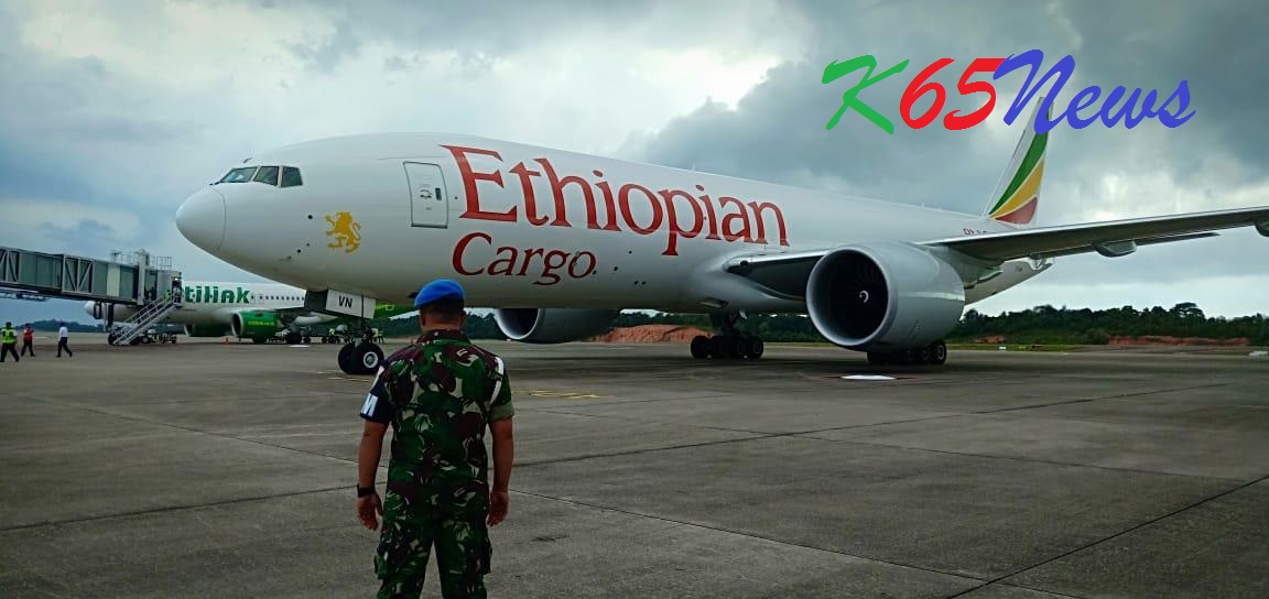 Pesawat Kargo Jenis Boeing 777 dengan nomor registrasi ET-AVN berasal bertolak dari Addis Ababa, ibukota Ethiopia dengan tujuan Hong Kong.  Untuk proses penyidikan lebih lanjut pesawat tersebut diamankan oleh personel TNI AU di Bandara Hang Nadim Batam.***(SP/K65News).