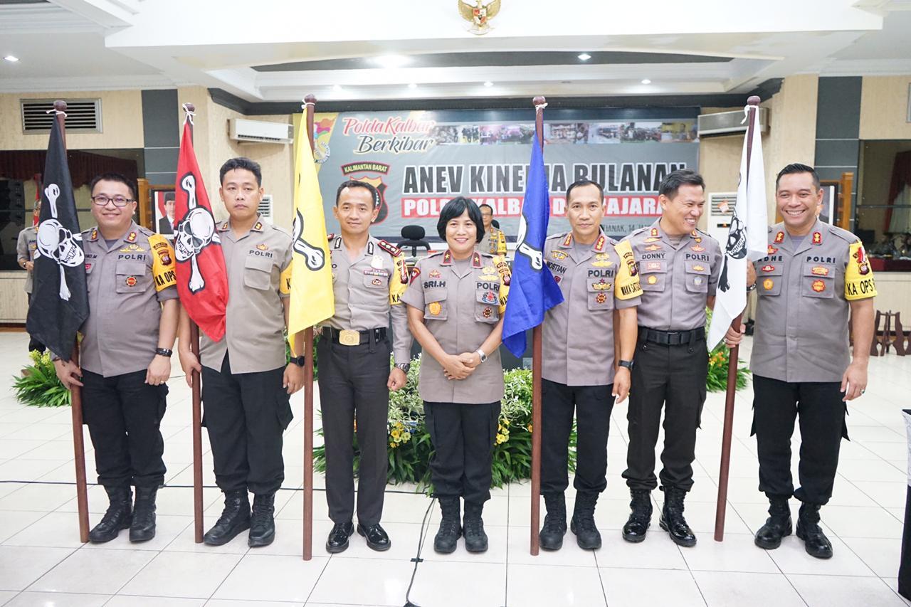 5 kategori yang dibahas dalam Anev bulanan ini yaitu Kemampuan Mengelola dan Mengendalikan Harkamtibmas, Penyelesaian Perkara, Zero Pelanggaran Personel, Realisasi Anggaran terhadap Belanja Modal dan Belanja Barang, dan Pengungkapan Kasus Zero Ilegal