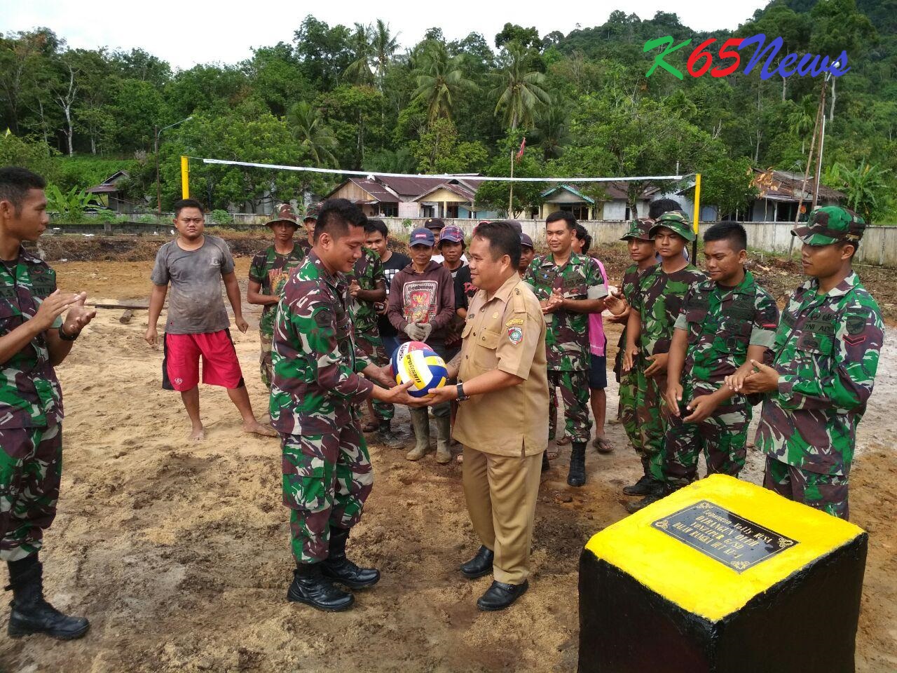 Danyon Zipur 6/SD, yang diwakili Perwira Seksi Intelijen Kapten Czi Falix Fardani dalam kesempatan tersebut menyerahkan secara simbolis hasil pelaksanaan pembuatan lapangan volly yang ditandai dengan memberikan bola volly kepada Kepala Dusun Terdu.