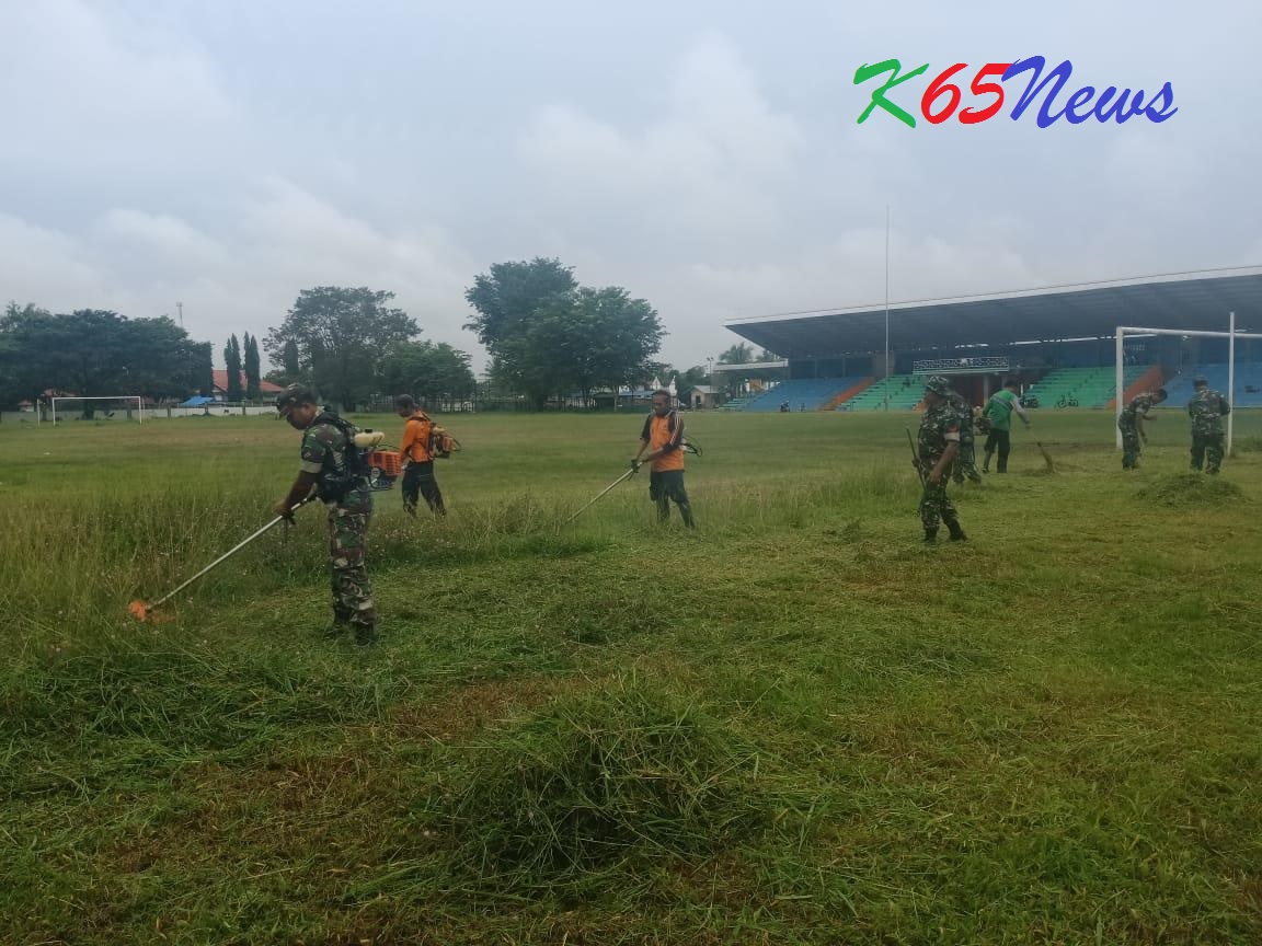 Kodim dan Dinas Kebersihan di Bantu Masyarakat Bersihkan Stadion