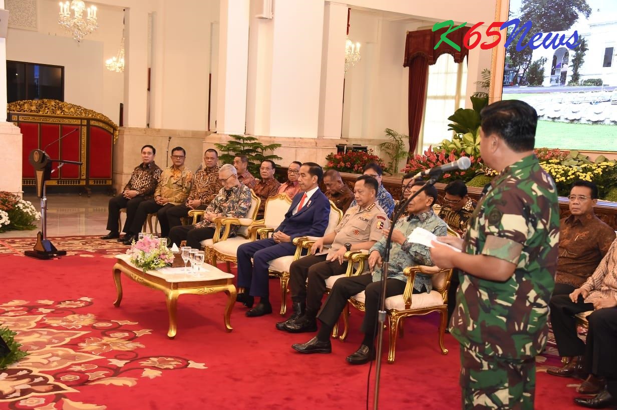 JAKARTA – Panglima TNI Marsekal TNI Hadi Tjahjanto, S.I.P memberikan sambutan dihadapan Presiden RI Ir. H. Joko Widodo dalam Rapat Pimpinan (Rapim) TNI-Polri tahun 2019, yang diikuti 368 Perwira Tinggi yang terdiri dari 198 Pati TNI dan 170 Pati Polri, bertempat di Istana Negara, Jalan Merdeka Utara, Jakarta Pusat, Selasa (29/1/2019).