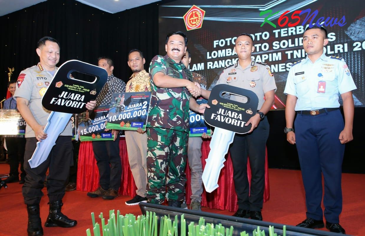 Selanjutnya, Panglima TNI Marsekal TNI Hadi Tjahjanto, S.I.P. bersama Kapolri Jenderal Polisi Prof. HM. Tito Karnavian, P.hD., menyerahkan secara langsung hadiah lomba foto kepada para pemenang. Lomba foto “Sinergitas TNI-Polri Membangun Negeri” dengan tiga kategori yaitu, kategori jurnalis, kategori umum dan kategori TNI-Polri, diikuti oleh 1.600 peserta dari seluruh Indonesia.***(SP/K65News).
