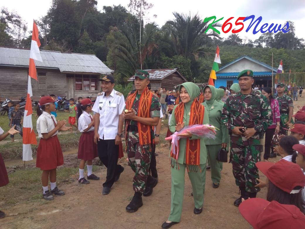 Usai Upacara penutupan, dilanjutkan dengan pengecekan fisik sarana jembatan dan jalan. Danrem 121/Abw juga memberikan paket sembako kepada masyarakat Desa Sekais.