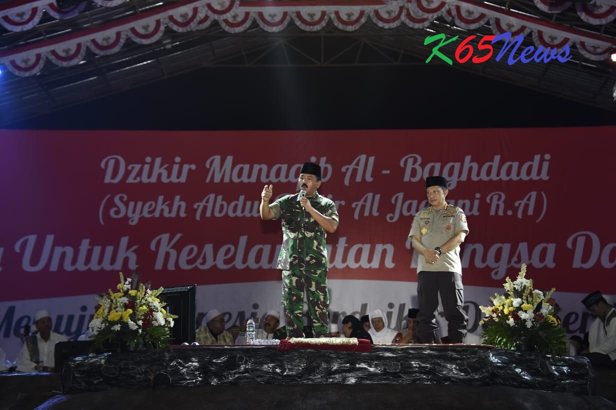 KARAWANG – Panglima TNI, Marsekal TNI Hadi Tjahjanto, S.I.P. bersama Kapolri, Jenderal Pol. Prof. H. Tito Karnavian, Ph.D., melaksanakan silaturahmi di Pondok Pesantren Al-Baghdadi, Rengasdengklok, Kabupaten Karawang, Jawa Barat, Sabtu malam (30/3/2019).