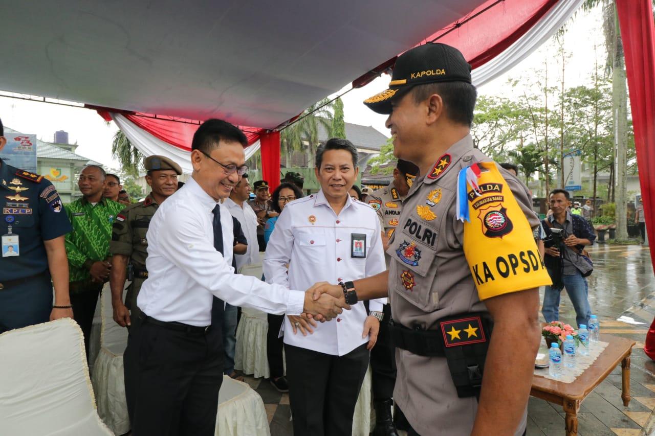 PONTIANAK – Kepala Kepolisian Kalimantan Barat Inspektur Jenderal Polisi Drs Didi Haryono SH MH memimpin Apel Konsolidasi Operasi Ketupat Kapuas 2019 dan Kesiapan Pengamanan Sidang Perdana Perselisihan Hasil Pemilihan Umum (PHPU). Panglima Komando Daerah Militer XII/Tanjungpura Mayor Jenderal TNI Herman Asaribab hadir dalam kegiatan yang digelar di Taman Alun-Alun Kapuas, Jalan Rahadi Oesman, Kota Pontianak. Personel gabungan TNI-Polri dan instansi terkait juga hadir, Kamis (13/06/2019).