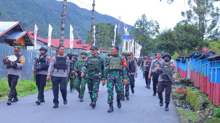MULIA – Dalam rangka mengantisipasi potensi gangguan keamanan menjelang putu (MK) terkait sengketa Pilkada Tahun 2024, Dandim 1714/PJ Letkol Inf. Irawan Satya Kusuma S.Hub.Int. dan Kapolres Puncak Jaya AKBP Kuswara, S.H., S.I.K., M.H Memimpin patroli gabungan cipta kondisi dengan jalan kaki, Jumat (21/02/2025).