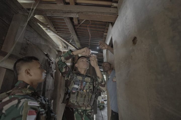 Bantu Kesulitan Rakyat, Satgas Yonif 715/Motuliato Perbaiki Instalasi Listrik di Perbatasan