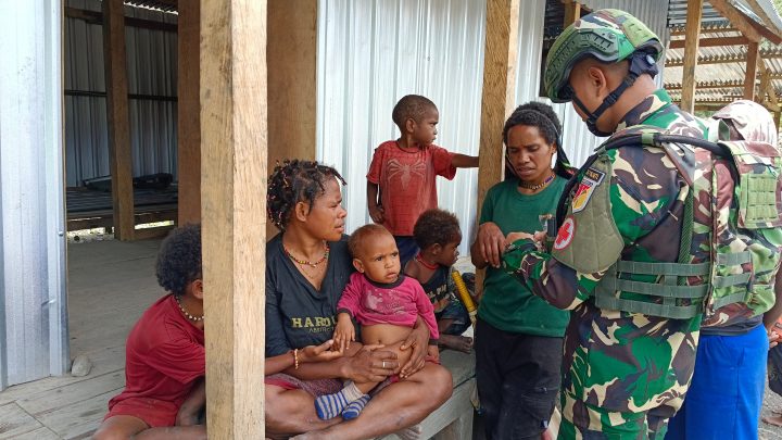 PUNCAK JAYA – Sebagai bentuk nyata kepedulian Satgas Yonif 715/Mtl kepada warga binaannya, melalui Pos Tinolok melaksanakan kegiatan pelayanan kesehatan keliling bagi masyarakat di Kampung Tinolok, Distrik Yambi, Puncak Jaya, Kamis (12/06/2025).