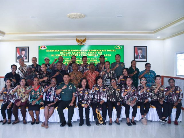 TIMIKA – Dalam rangka mempererat silaturahmi dan memperkuat sinergi antara TNI dengan komponen masyarakat, khususnya Keluarga Besar TNI (KBT), Kodim 1710/Mimika menggelar kegiatan Komunikasi Sosial (Komsos) bersama Keluarga Besar TNI (KBT) tingkat pusat secara virtual bertempat di Aula Makodim 1710/Mimika, Jalan Agimuga Mile 32, Distrik Kuala Kencana, Kab. Mimika. Rabu (11/6/2025).