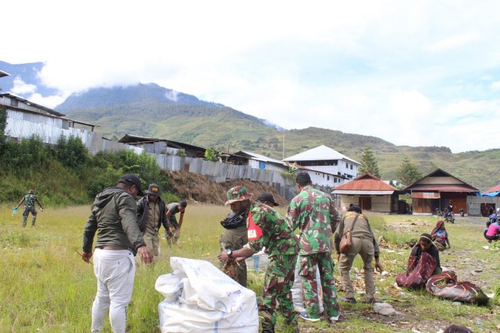 MULIA – Kodim 1714/Puncak Jaya, bersama jajaran Polri, ASN, dan masyarakat Puncak Jaya, melaksanakan karya bakti pembersihan sampah di Pasar Mama-Mama (Nagalomuni), Mulia Kota, pada hari Rabu, (11/2/2026). Sebanyak 170 personel gabungan TNI-Polri dan ASN dikerahkan dalam kegiatan ini.
