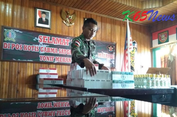Hankam hukrim Lintas Daerah Serba Serbi Penyelundupan Ribuan Batang Rokok dan Miras Digagalkan Satgas Pamtas Yonif Mekanis 643/Wns April 26, 2019