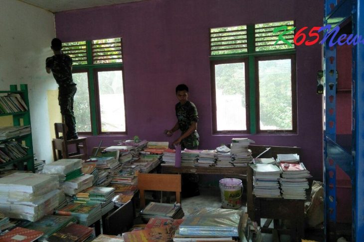 Hankam Lintas Daerah pendidikan Peduli Pendidikan, Satgas Pamtas Yonif Mekanis 643/WNS Rehab Perpustakaan Maret 26, 2019
