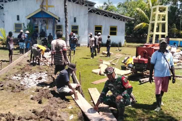 Hankam Lintas Daerah Serba Serbi Perkokoh Kemanunggalan, Babinsa Koramil Kokonao Bersama Warga Binaan Gotong Royong Cor Jalan Gereja Februari 5, 2026